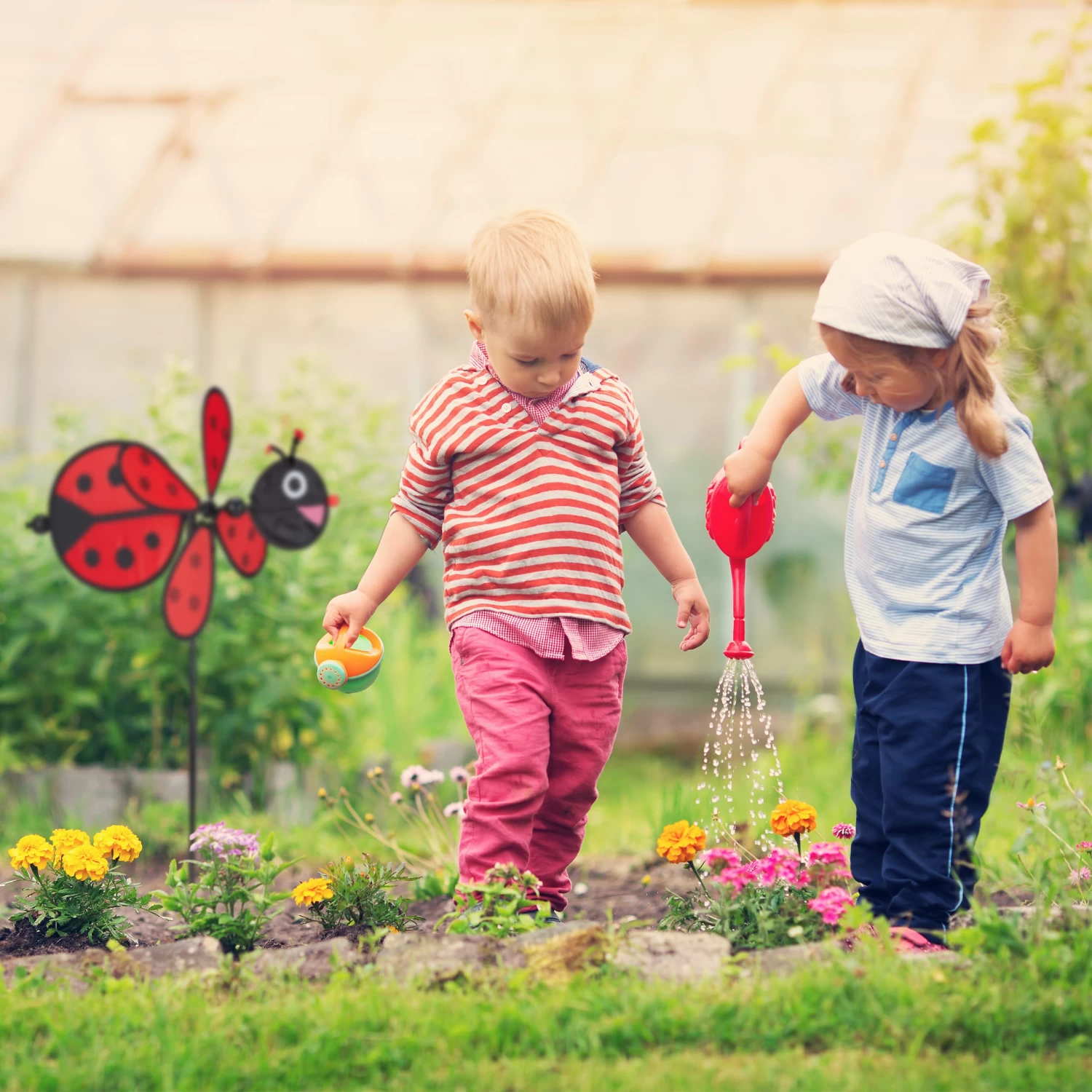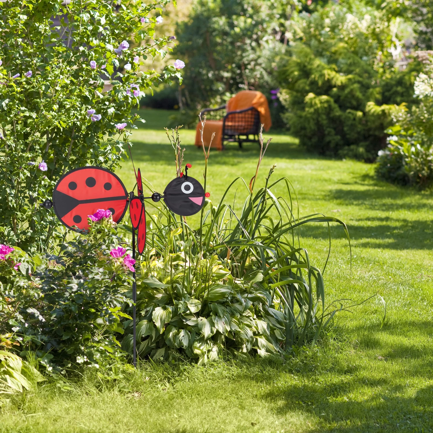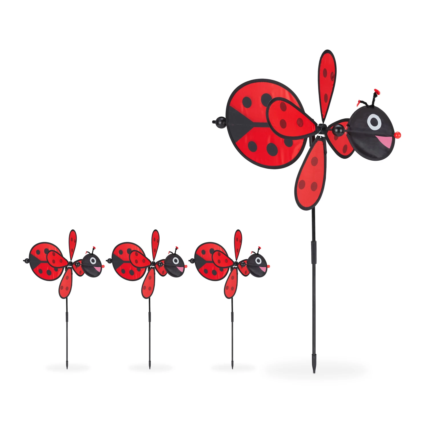 Bringen Sie mit diesem frühlingshaften Gartenstecker Farbe auf Ihren Balkon. Einfach zusammengesetzt und in einen Blumentopf gesteckt, ist das niedliche Marienkäfer Design ein echter Hingucker. Genießen Sie das prachtvolle Farbenspiel, wenn das Windrad von wehenden Lüften angetrieben wird. An den optischen Eindrücken des Windspiels können sich Kinder und auch Erwachsene erfreuen. Platzieren Sie die Windmühle im Garten oder auf der Terrasse oder nehmen Sie sie mit zum Strand sowie zum Camping.