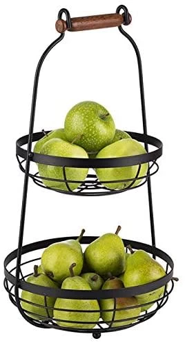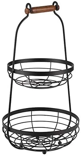 Diese Etagere ist ein perfekter, stilvoller Helfer am Buffet. In den beiden Körben können z.B. Brötchen, Obst oder kleine Mengen Brotaufstrich angerichtet und leicht zugänglich serviert werden. Durch den Griff am oberen Ende lässt sich das Serviergestell mit einer Hand mühelos tragen.