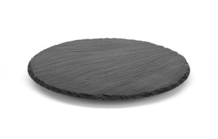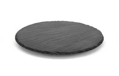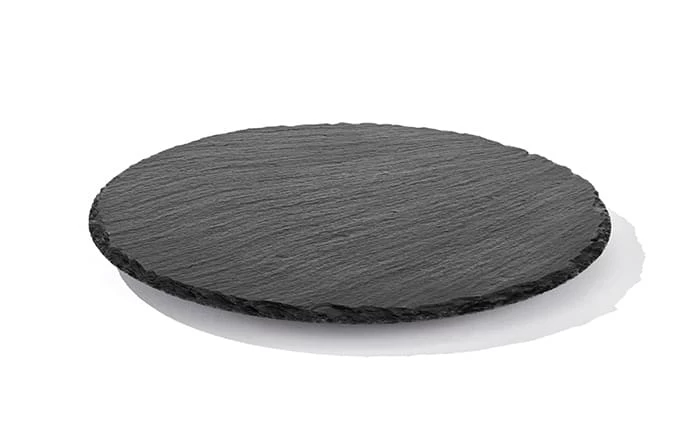 Ø 32 cm, H: 2,5 cm Naturschieferplatte Schiefer-Materialstärke 6-9 mmdrehbar, gebrochene Kanten glänzende, versiegelte Oberfläche