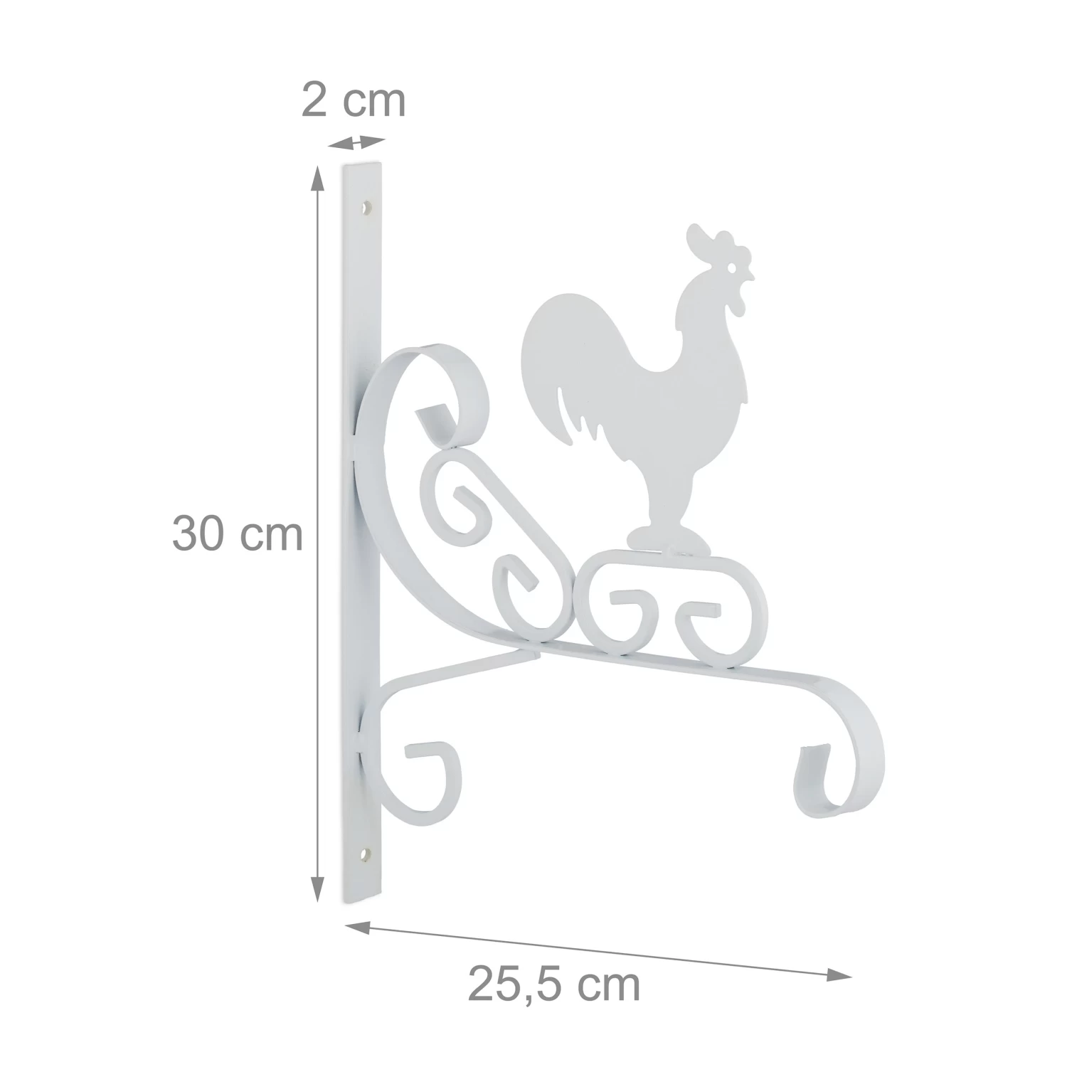 Mit dieser schicken Blumenampelhalterung kannst Du Deine Pflanzen und Blumentöpfe dekorativ in Szene setzen. Der Ampelhalter mit den geschwungenen Verzierungen und der Hahnfigur eignet sich hervorragend für Deinen Balkon oder Garten, kann aber auch in der Wohnung genutzt werden. Laternen, Windspiele oder Blumenkränze kannst Du ebenso an dem Wandhaken präsentieren. Die Pflanzenaufhängung aus Eisen kann mithilfe des beiliegenden Montagematerials schnell an der Wand befestigt werden.