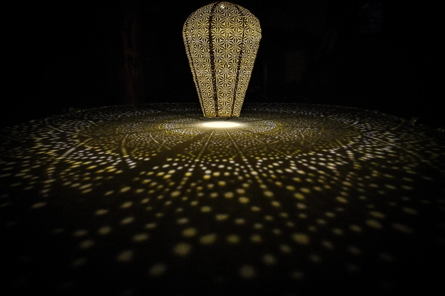 die Dekoleuchte mit dem Sashiko-Design erzeugt überall eine warme, wohlige Atmosphäre.
