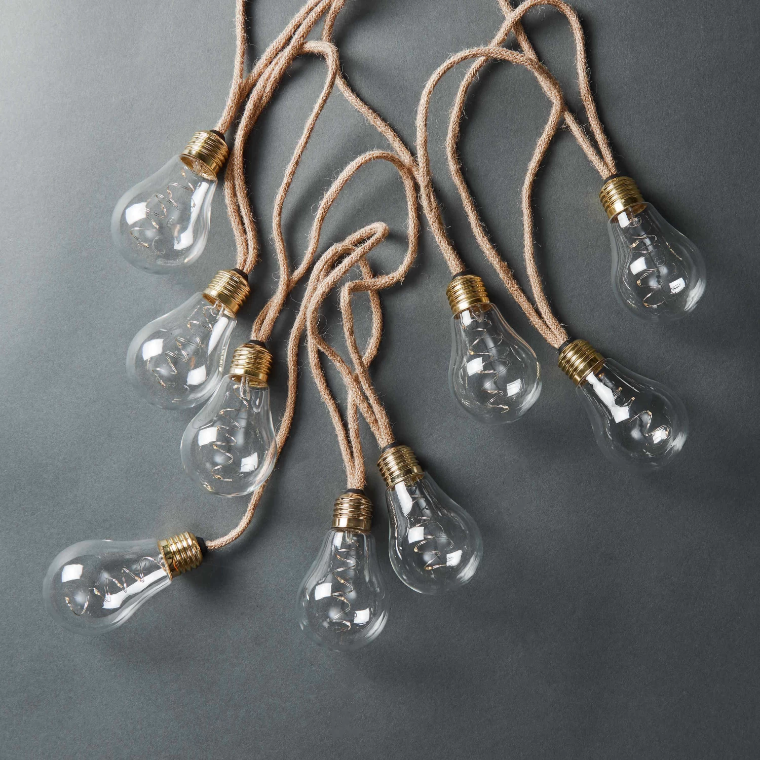 LED Lichterkette Mit Naturseil 15 Lichter Und Stecker BULB LIGHTS In Natur