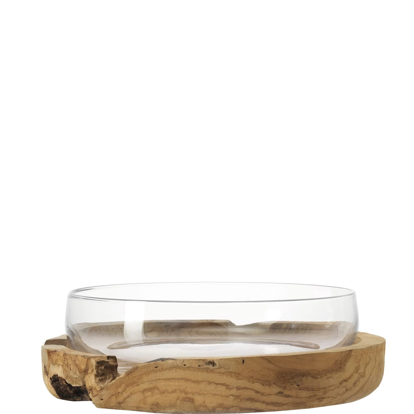 Schale handgefertigtes Unikat lebensmittelgerecht aus der Serie TERRA passt zum Landhausstil 5 kg Glas, Teakholz Maße: 12 x 39 x 39 cm (HxBxT) Durchmesser: 39 cm