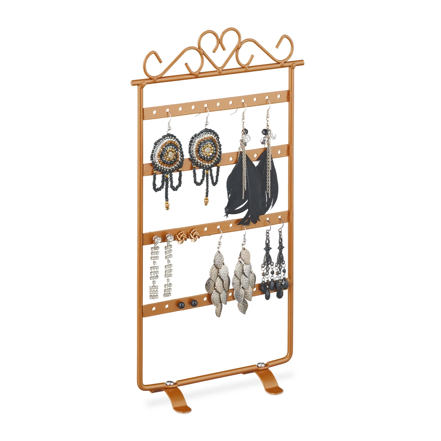 Mit diesem Ohrringständer hängt der passende Ohrschmuck für Dein Outfit jederzeit griffbereit. Der Schmuckhalter bietet auf 4 Etagen ausreichend Stauraum, um Deine Lieblingsstücke unterzubringen. Insgesamt verfügt der Schmuck-Organizer über 44 Steckplätze für Ohrstecker, Ohrringe oder lange Ohrhänger. Der Ohrringhalter überzeugt durch sein romantisches Design mit dekorativer Herzverzierung. So sorgt die Ohrringhalterung für einen Hingucker im Schlafzimmer, Bad oder auf dem Schminktisch.