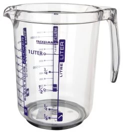Beim Kochen und Backen kommt es auf die richtigen Mengenverhältnisse der verschiedenen Zutaten an – nur wenn Wasser, Mehl und Co. optimal aufeinander abgestimmt sind, freuen wir uns über ein gelungenes Gericht oder einen leckeren Kuchen. Mit dem großen Messbecher von Fackelmann stellen Sie sicher, dass Sie immer die richtigen Mengen für Ihre Rezepte und Kocherlebnisse verwenden. Der stabile Küchenhelfer verfügt über gut lesbare Messskalen und ist dabei unempfindlich und langlebig im Gebrauch. Nach der Verwendung kann der Messbecher leicht per Hand gereinigt werden.