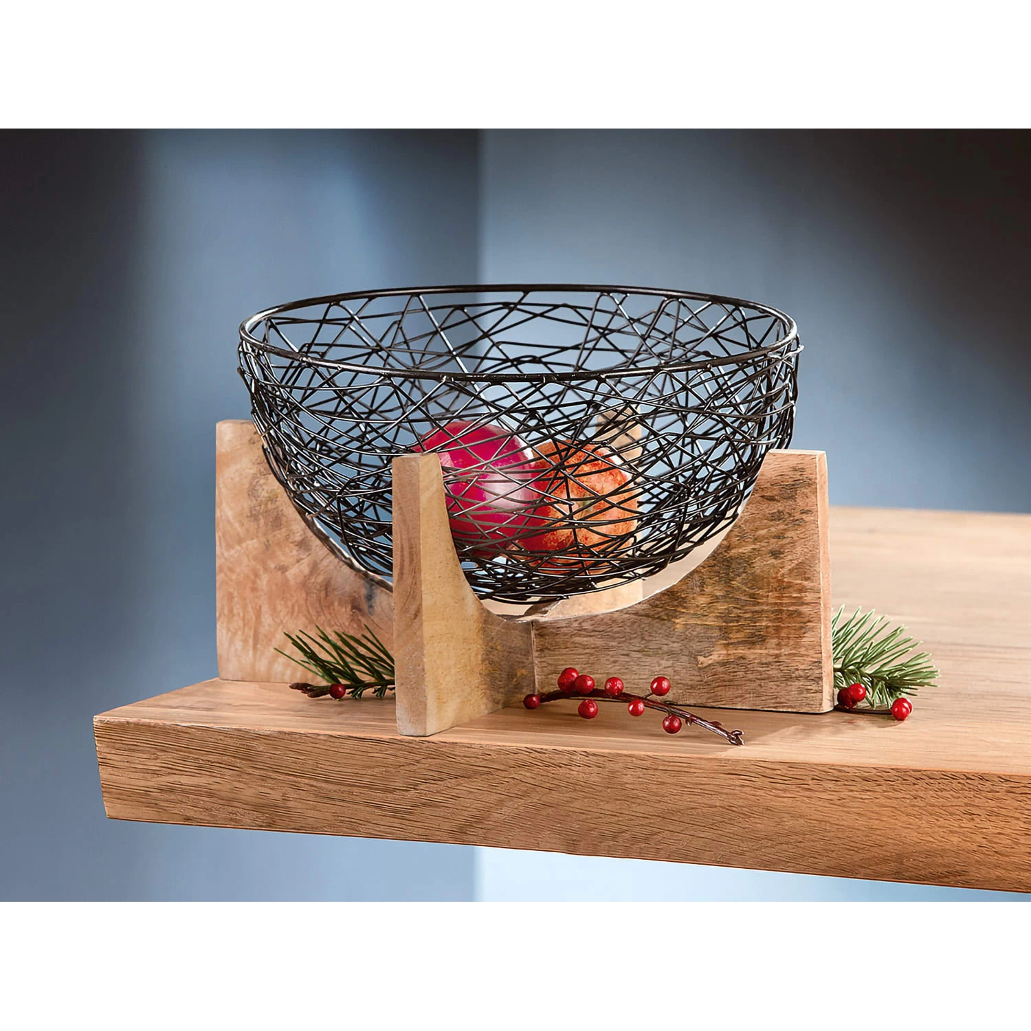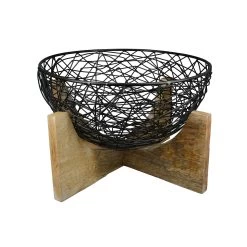 Durch die Kombination aus zwei Materialien ist diese wunderschöne Metallschale Ferro mit Sockel aus nachhaltigem Mango-Holz einzigartig und passt in jeden Einrichtungsstil. Die schwarze Schale aus Draht findet durch die naturfarbene Holzbasis den perfekten Stand. Das Draht Design bildet einen schönen Kontrast zum dezenten Holz und bereichert jeden Raum. Ob im Badezimmer, der Küche, auf dem Sideboard oder dem Wohn- Esszimmertisch, sie ist nie fehl am Platz. Zeitlos und doch modern setzt diese Schale charmante Akzente. Es ist eine wunderbare Deko-Schale, die Ihrem Wohnambiente eine gewisse Eleganz verleihen wird. Sie ist nicht für Lebensmittel geeignet. Lassen Sie ihrer Kreativität freien Lauf!