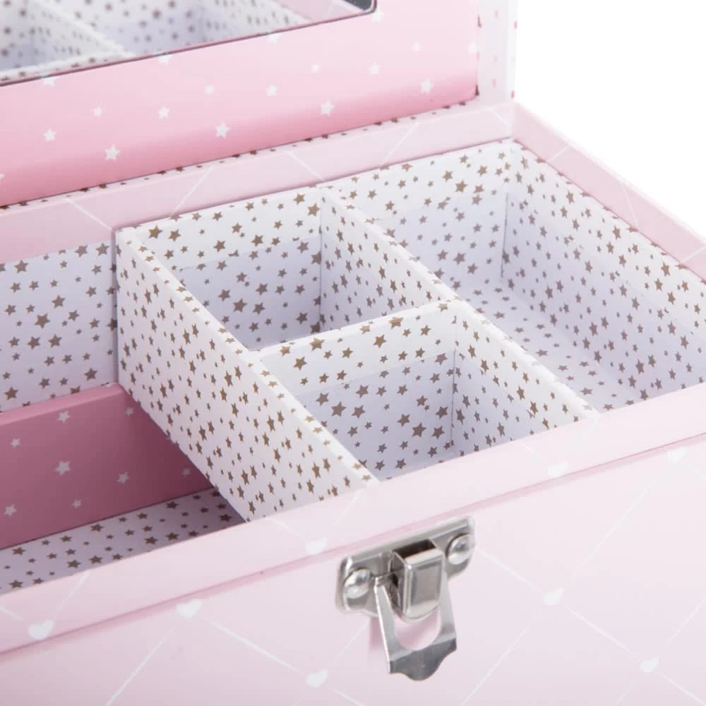 Dieses Produkt ist nicht nur eine Aufbewahrungsfunktion, sondern auch eine Dekoration. Es wird auf einer Kommode oder auf einem Nachttisch großartig aussehen. Eine elegante Schachtel mit einem Spiegel im Inneren ist eine perfekte Geschenkidee. Es bietet bequemen und einfachen Zugriff auf die darin aufbewahrten Dinge.