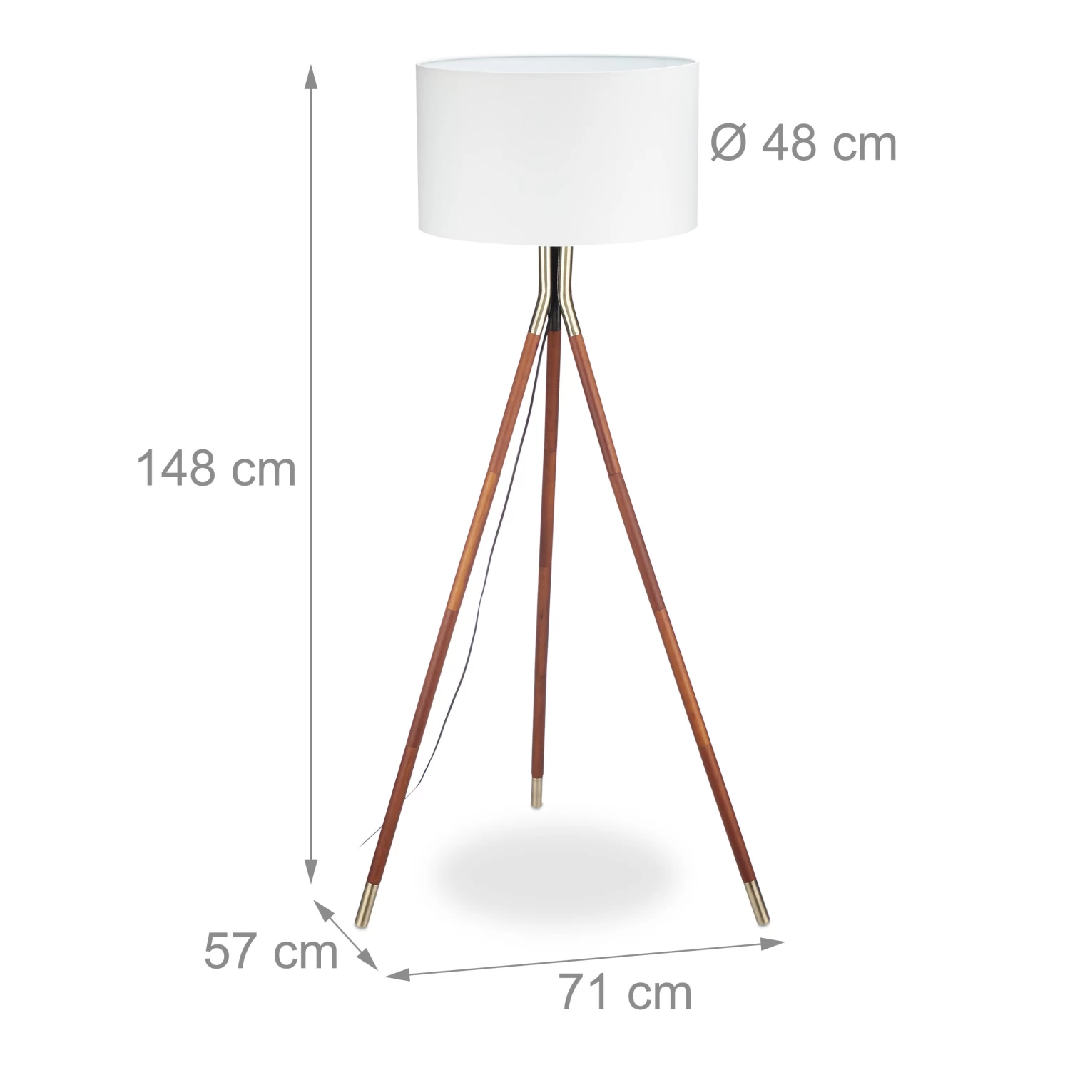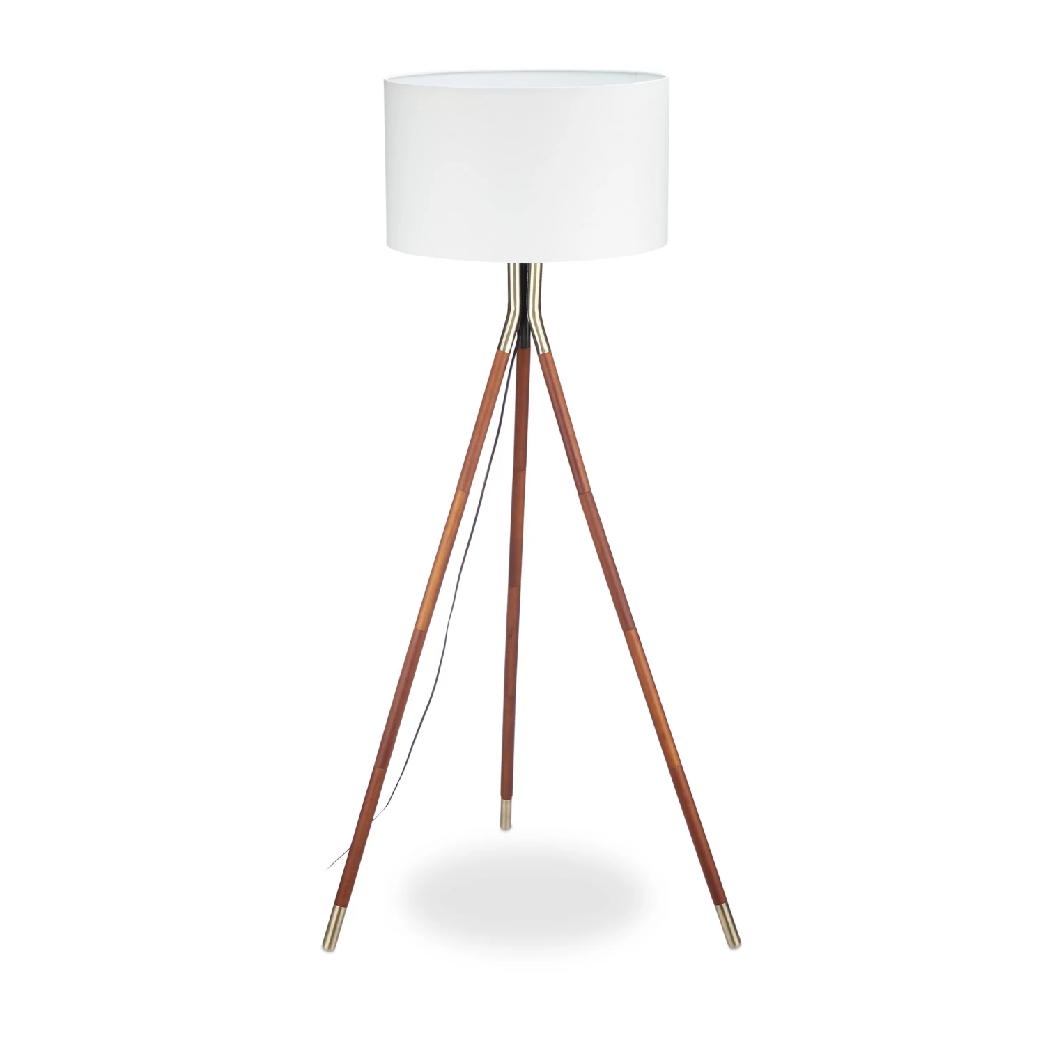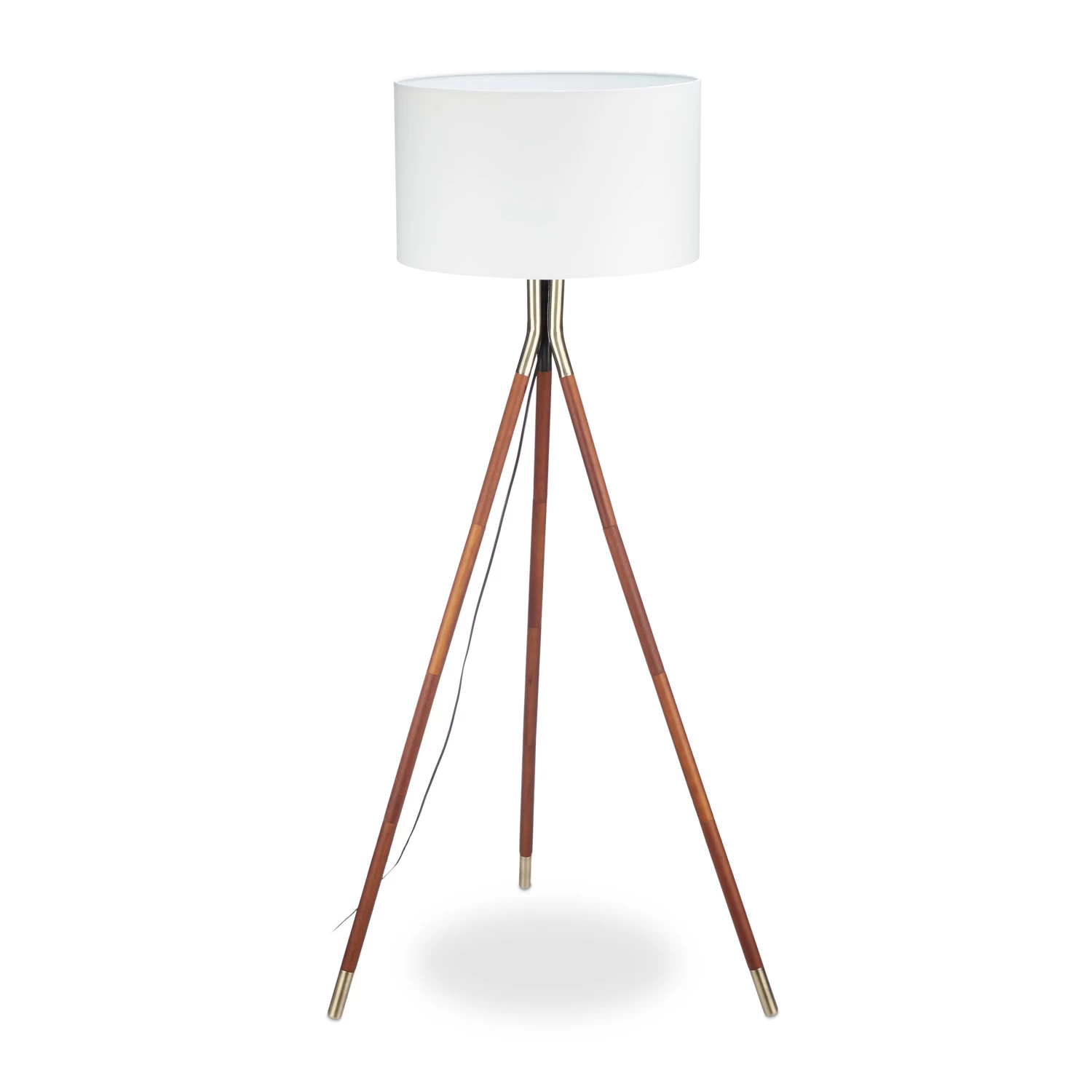 Wenn Sie sich ein angenehm beleuchtetes Wohnzimmer wünschen, ist die Stehlampe mit dem weißen Schirm genau das Richtige für Sie. Die Stativlampe verfügt über 3 Beine mit einer wertig dunklen Optik, die sehenswert mit dem Messing-Finish des Gestells und der Standfüße harmonisiert. Während sich die Tripod Standlampe mit ihrem ebenso einfachen wie schönen Design erstklassig in Ihre Stube einfügt, ist das lange schwarze Kabel eher unscheinbar und mit einem praktischen Fußschalter versehen.