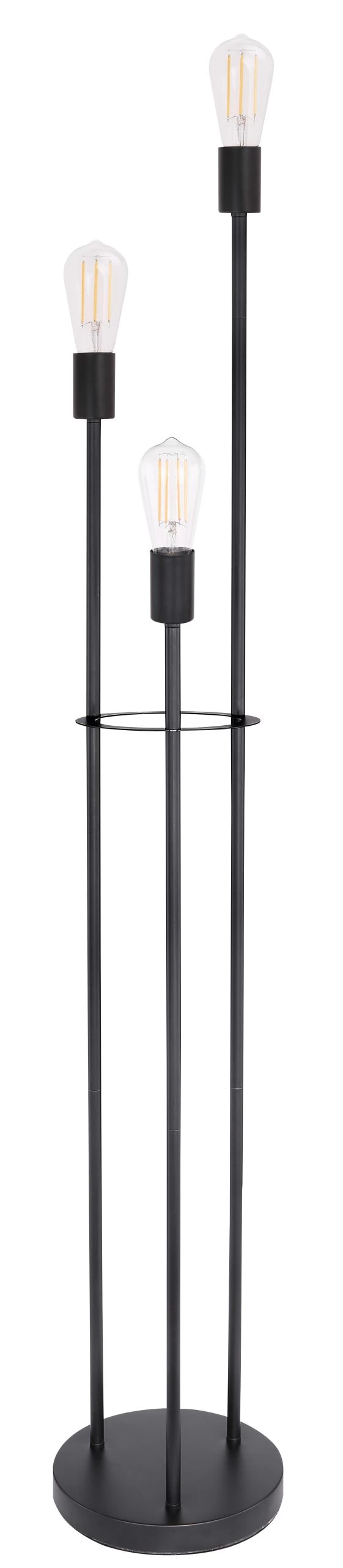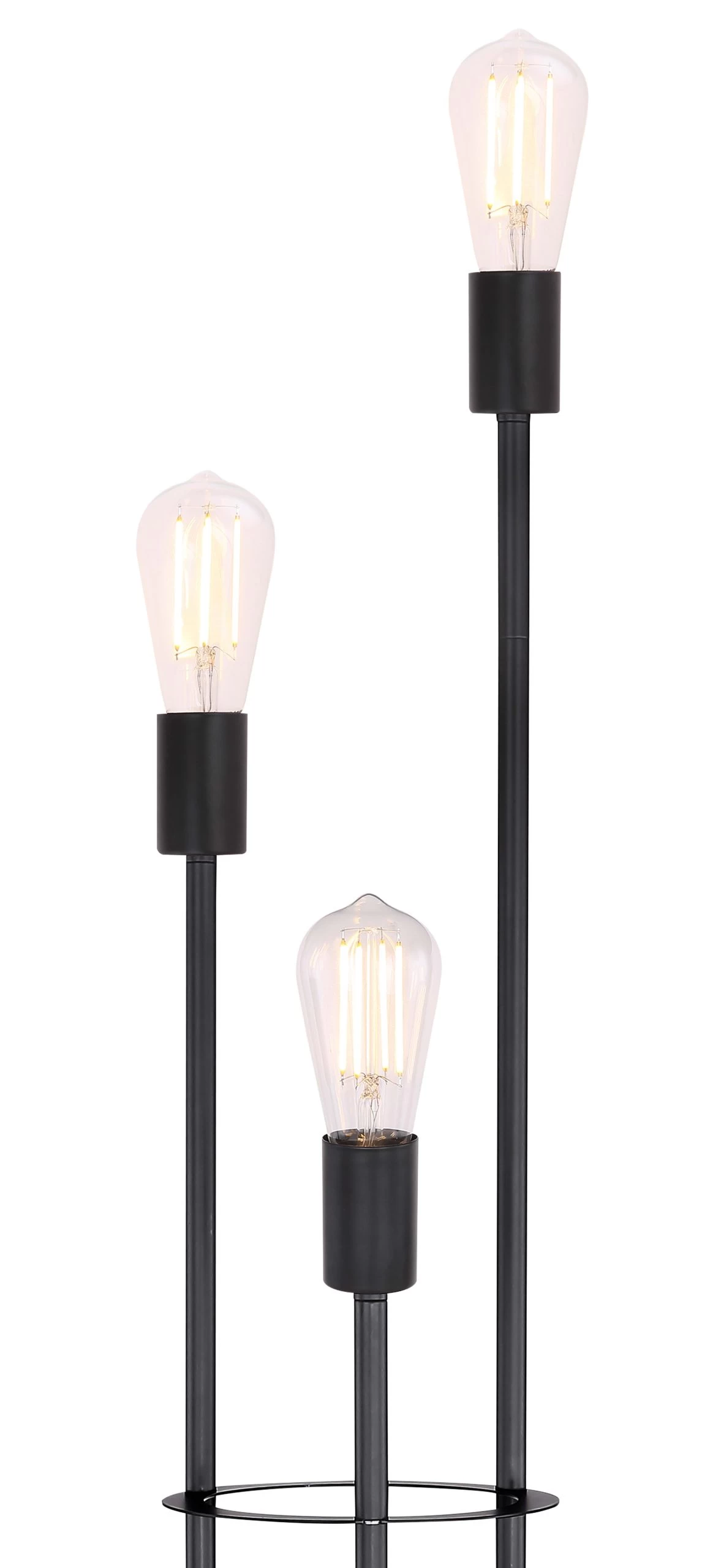 Stehleuchte Metall schwarz, Fußtrittschalter im Kabel, ohne Schirm, ø: 250mm, H: 1400mm, Kabellänge 1800mm, exkl. 3x E27 60W 230V