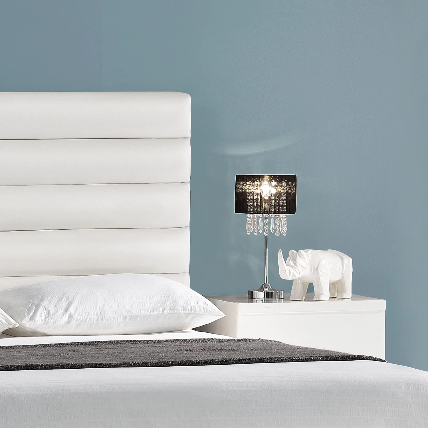 Schwarzer Stoffschirm, Kristallbehang, Chromfuß