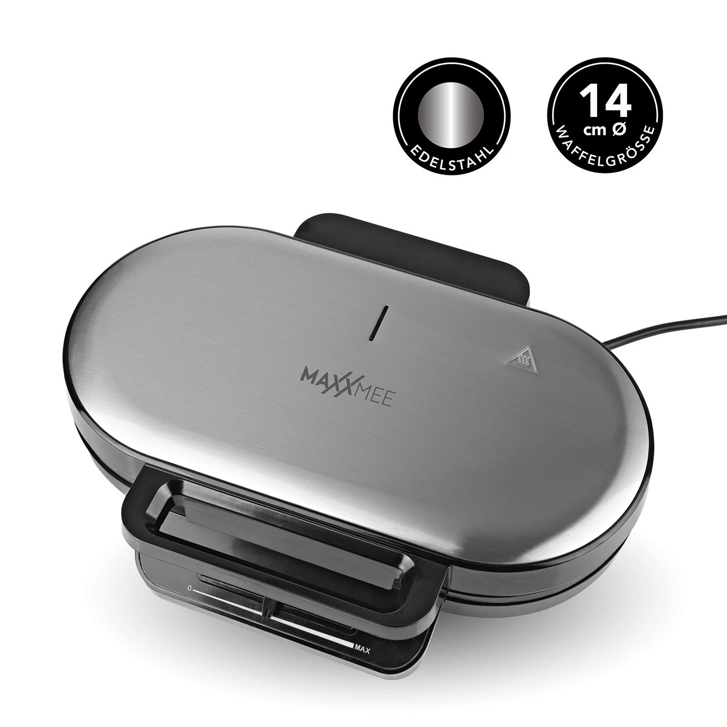 – Maße (L x B x H): ca. 22,8 x 31,8 x 8 cm; Waffelgröße je 14,0 cm Ø.